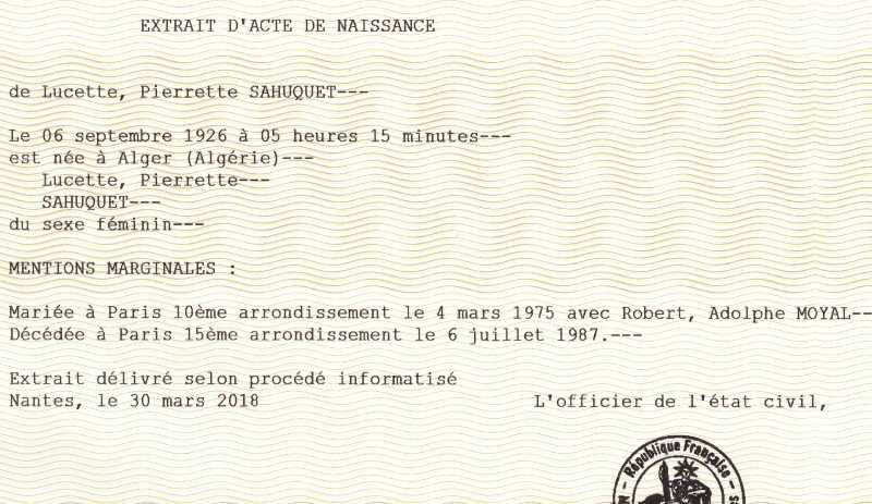 1926 Acte de naissance (Alger, Algérie Française)