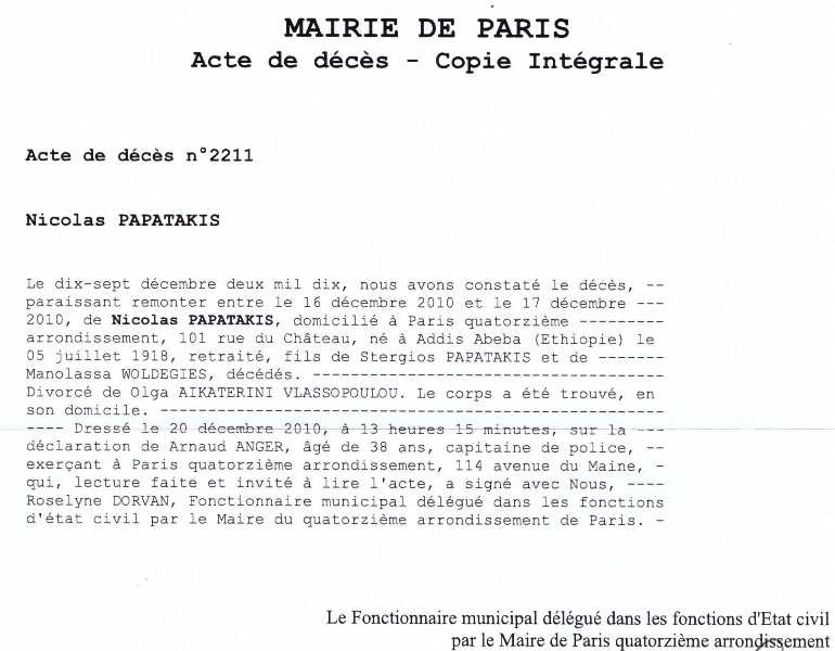 2010 Acte de décès (Paris 14ème, France)