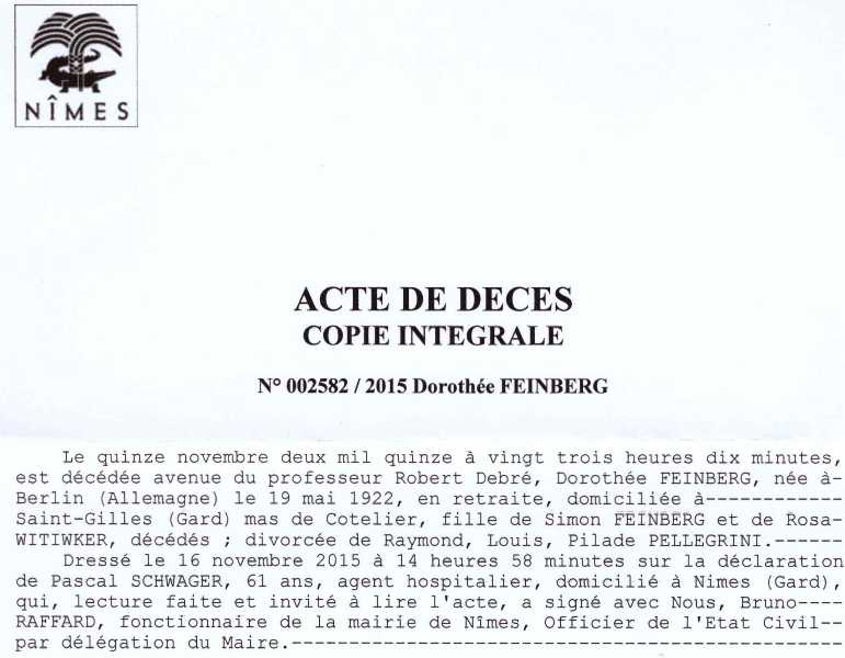 2015 Acte de décès (Saint-Gilles-du-Gard, France)