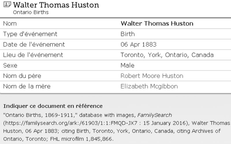 1883 Retranscription de l’acte de naissance (Toronto, Ontario, Canada)