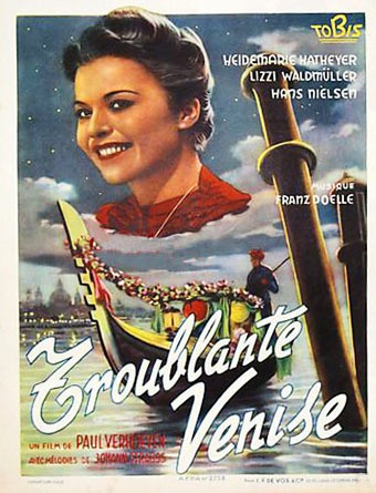 ![]() 1929 Terre sans femme (das land ohne frauen) de Carmine Gallone avec Conrad Veidt & Mathias Wieman | ![]() 1937 La fille à la bonne réputation (das mädchen mit dem guten ruf / Mandolina) de Hans Schweikart | ![]() 1942 Troublante Venise (die nacht in venedig) de Paul Verhoeven avec Heidemarie Hatheyer & Hans Nielsen | ![]() 1954 Les sept robes de Katrin (die sieben kleider der Katrin) de Hans Deppe avec Sonja Ziemann & Paul Klinger | ||