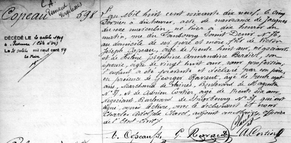 1879 Acte de naissance (Paris 10ème, France)