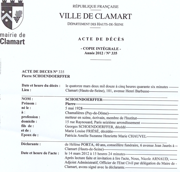 2012 Acte de décès (Clamart, France)