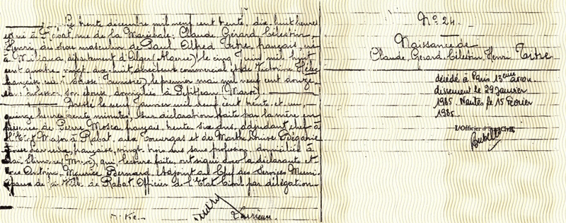 1930 Acte de naissance (Rabat, Maroc)