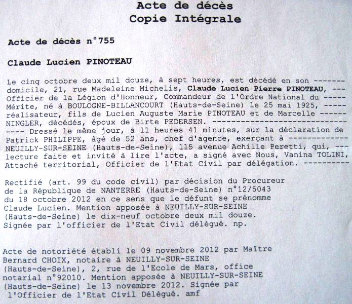 2012 Acte de décès (Neuilly-sur-Seine, France)