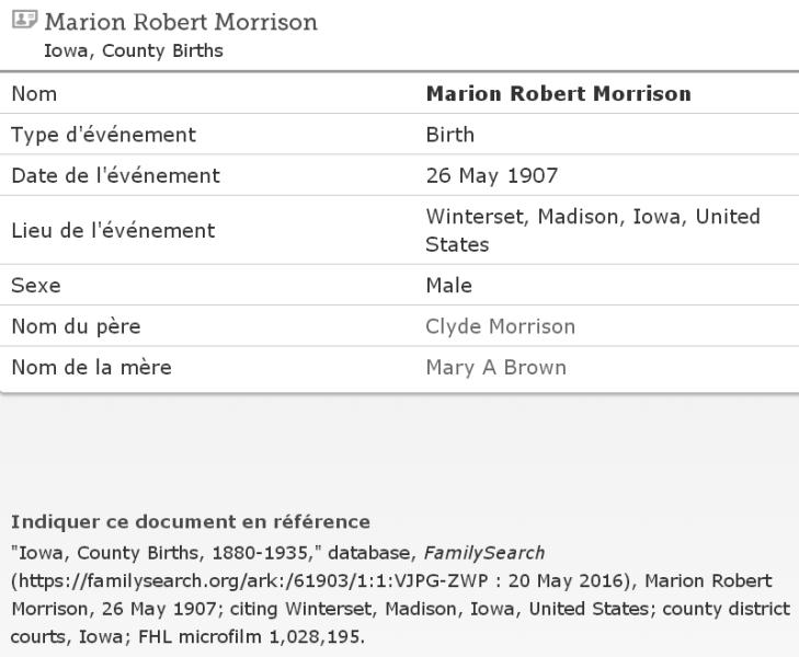 1907 Retranscription de l’acte de naissance (Winterset, Iowa, USA)