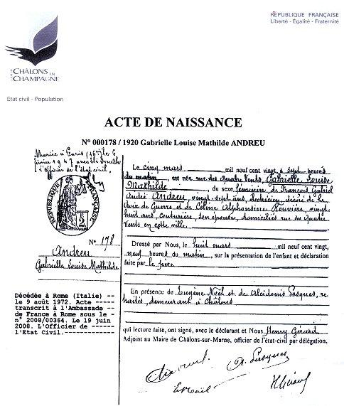 1920 Acte de naissance (Châlons-sur-Marne, France)