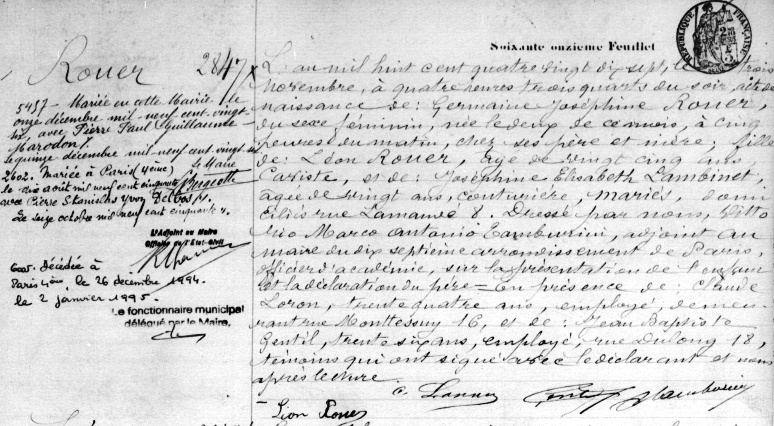 1897 Acte de naissance (Paris 17ème, France)