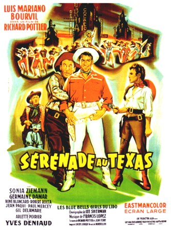 ![]() 1953 Les femmes s’en balancent – de Bernard Borderie avec Eddie Constantine & Nadia Gray | ![]() 1958 Sérénade au Texas – de Richard Pottier avec Luis Mariano, Bourvil, Sonia Ziemann & Paul Mercey | ![]() 1963 Un soir… par hasard – de Yvan Govar avec Annette Stroyberg, Jean Servais & Pierre Brasseur | ![]() 1965 Coplan FX 18, casse tout – de Riccardo Freda avec Richard Wyler, Jany Clair & Robert Manuel | ||