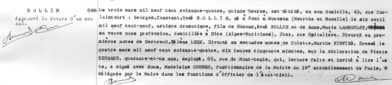 ![]() 1964 Acte de décès (Paris 18ème, France) | |||||