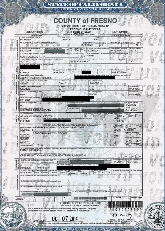 2014 Acte de décès (Fresno, Californie, USA)