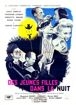![]() 1930 Le parfum de la dame en noir – de Marcel L’Herbier avec Roland Toutain, Léon Bélières & Marcel Vibert | ![]() 1937 Maman Colibri – de Jean Dréville avec Jean-Pierre Aumont, Marcelle Praince, Jean Worms & Denise Bosc | ![]() 1942 Des jeunes filles dans la nuit – de René Le Hénaff avec Gaby Morlay, Louise Carletti & Fernand Ledoux | ![]() 1952 Douze heures de bonheur – de Gilles Grangier avec Dany Robin, Georges Marchal & François Guérin | ||