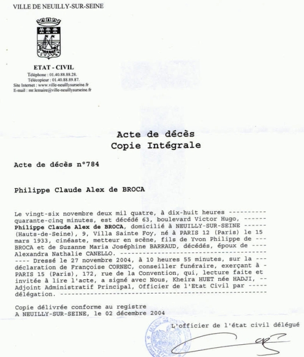 2004 Acte de décès (Neuilly-sur-Seine, France)