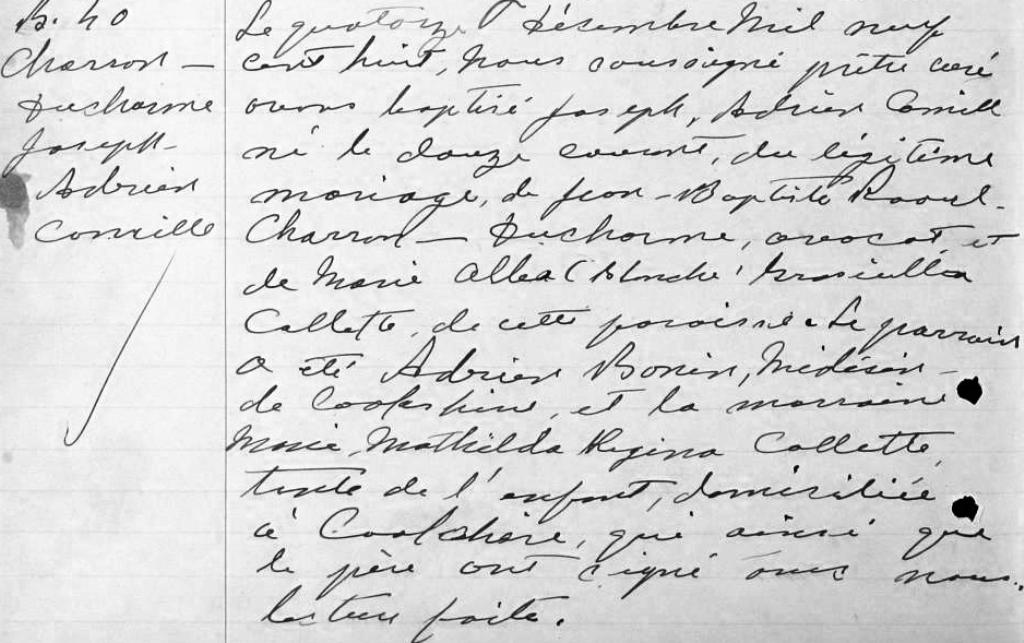 1908 Acte de baptême (Cookshire, Québec, Canada)