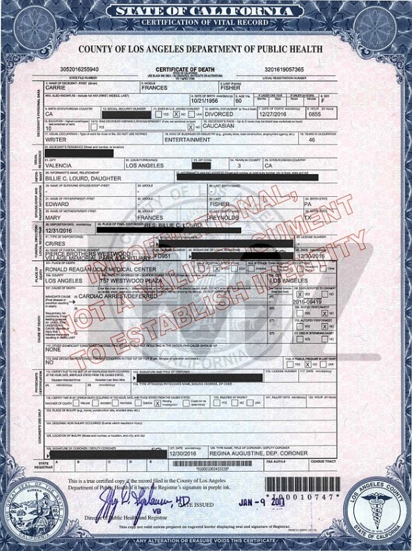 2016 Acte de décès (Los Angeles, Californie, USA)