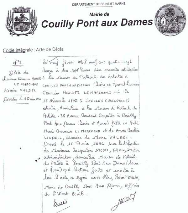 1992 Acte de décès (Couilly-Pont-aux-Dames, France)