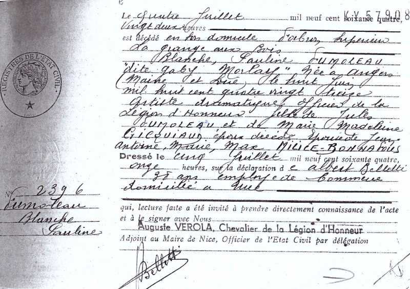 1964 Acte de décès (Nice, France)