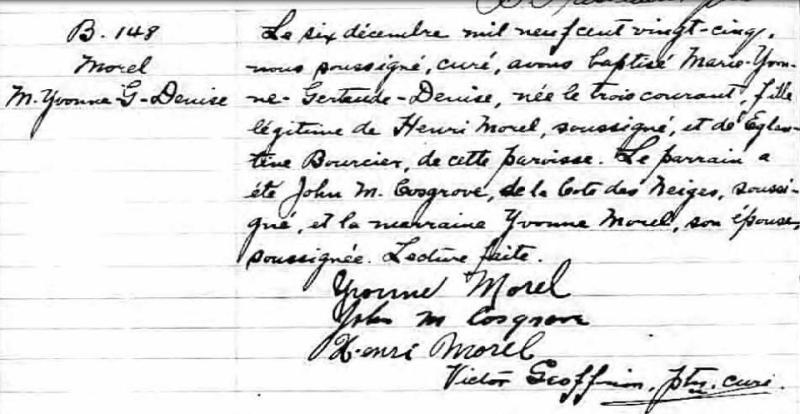 1925 Acte de baptême (Montréal, Québec, Canada)