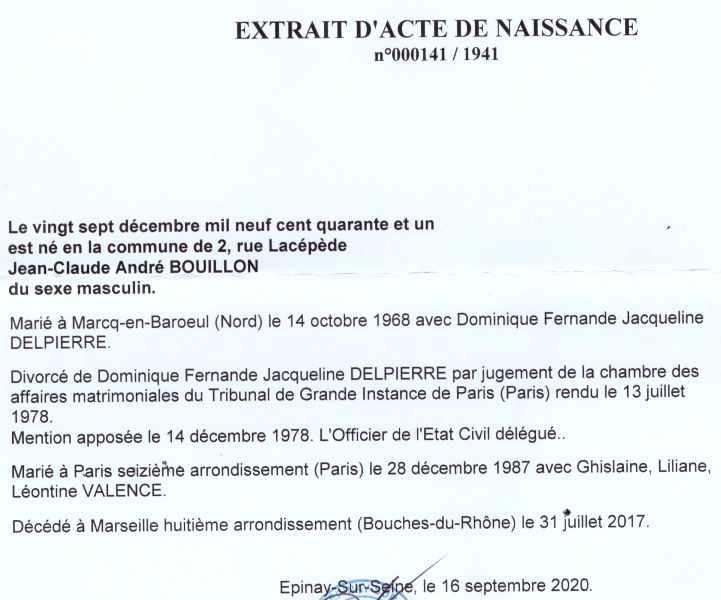 1941 Acte de naissance (Epinay-sur-Seine, France)