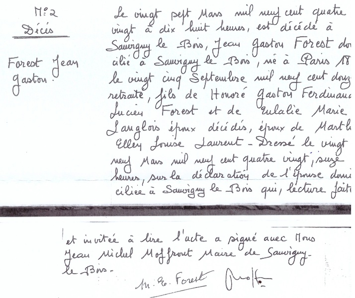 1980 Acte de décès (Sauvigny-le-Bois, France)