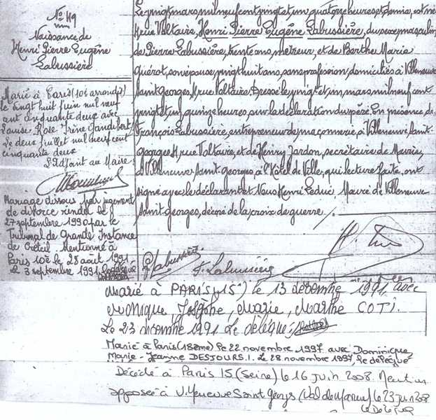 1921 Acte de naissance (Villeneuve-Saint-Georges, France)