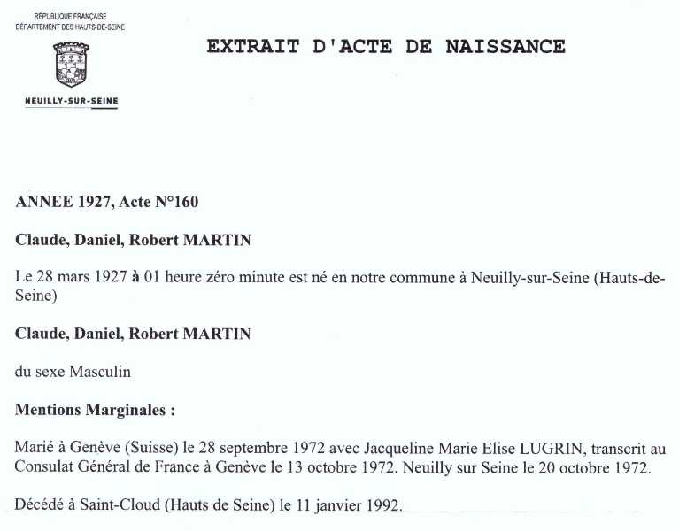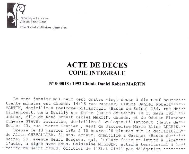 1976 Le chirurgien de Saint-Chad – de Paul Siegrist avec Aude Loring & Jacques Dumesnil | ![]() 1992 Acte de décès (Saint-Cloud, France) | ||||