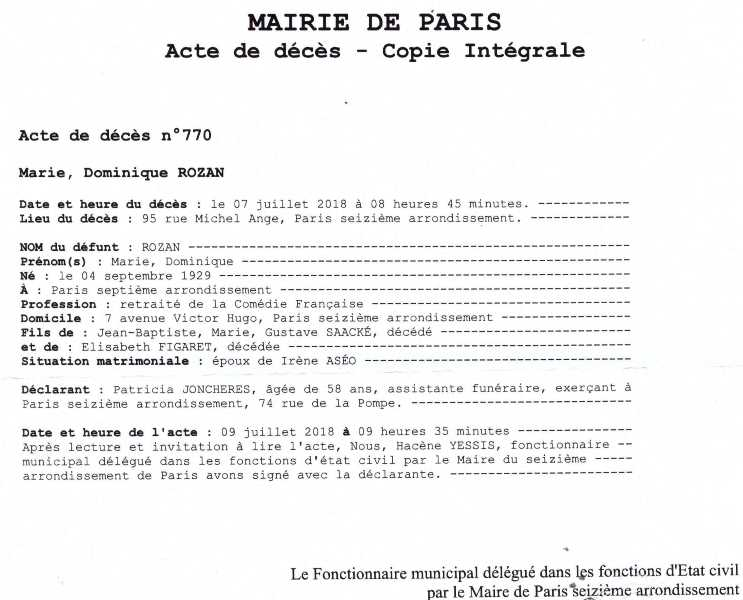 2018 Acte de décès (Paris 16ème, France)