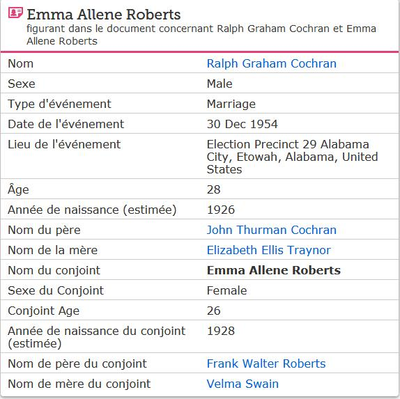1954 Retranscription de l’acte de mariage (Etowah, Alabama, USA)