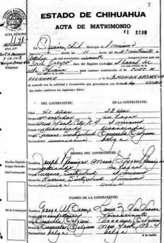 1950 Acte de mariage (Juarez, Chihuahua, Mexique)