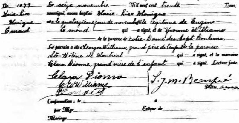 1930 Acte de baptême (Montréal, Québec, Canada)