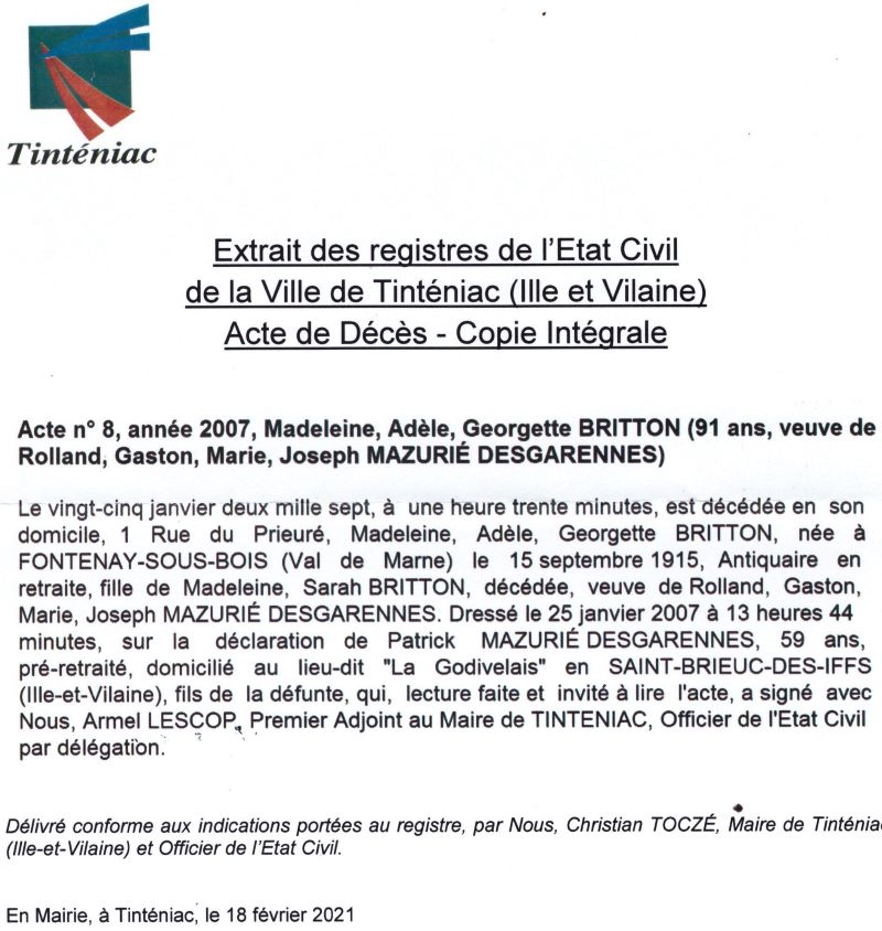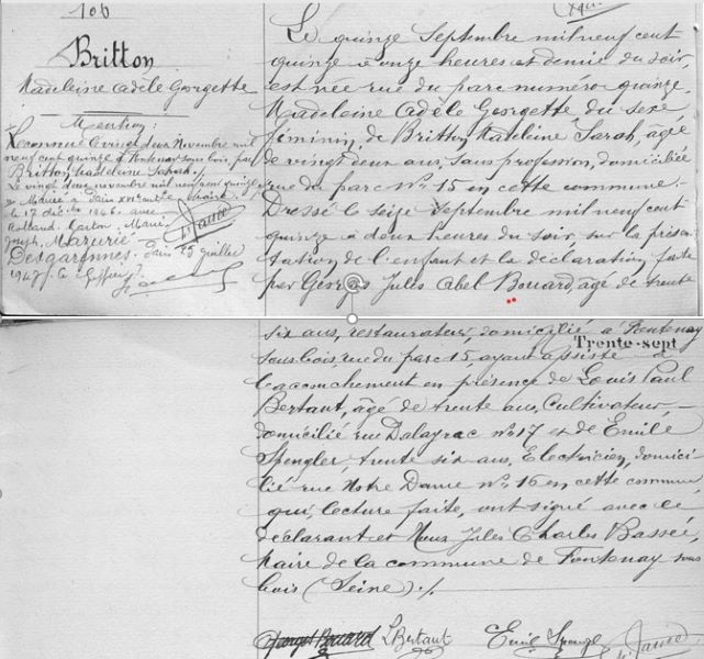 1915 Acte de naissance (Fontenay-sous-Bois, France)