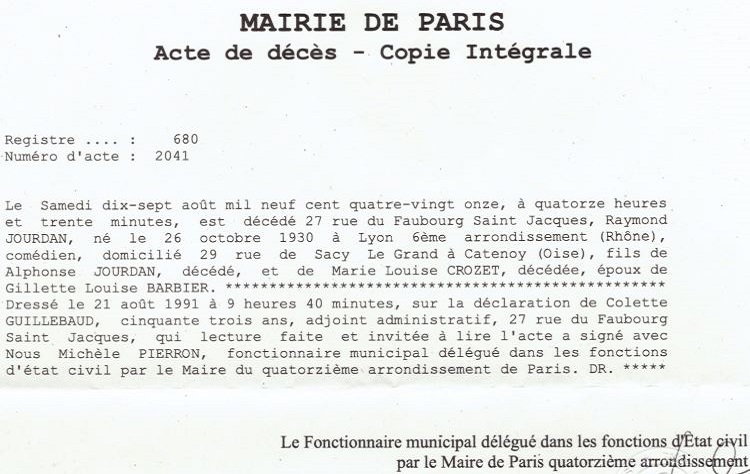 1991 Acte de décès (Paris 14ème, France)