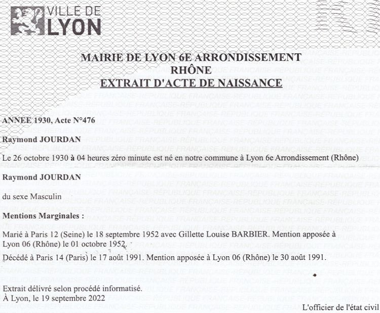 1930 Acte de naissance (Lyon 6ème, France)