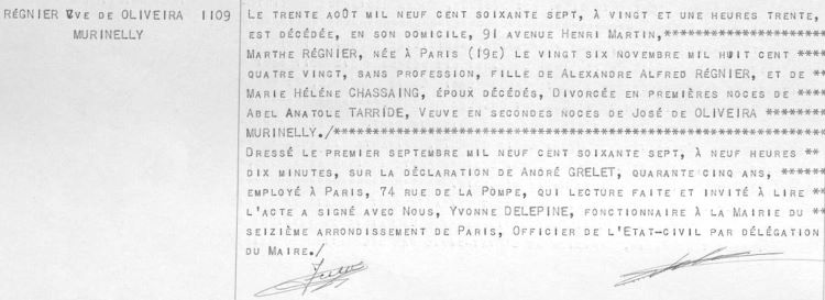 1967 Acte de décès (Paris 16ème, France)