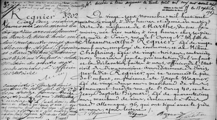 1880 Acte de naissance (Paris 19ème, France)
