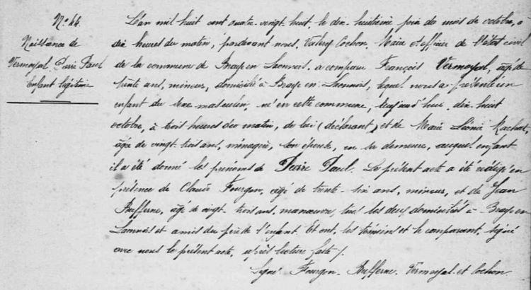 1888 Acte de naissance (Braye-en-Laonnois, France)