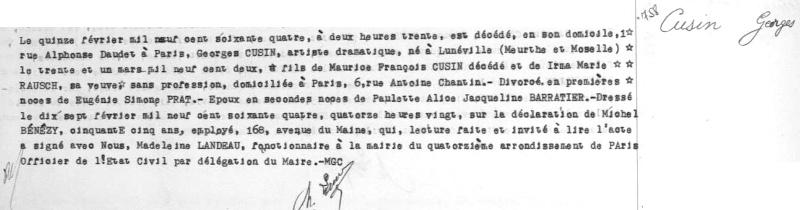 1964 Acte de décès (Paris 14ème, France)