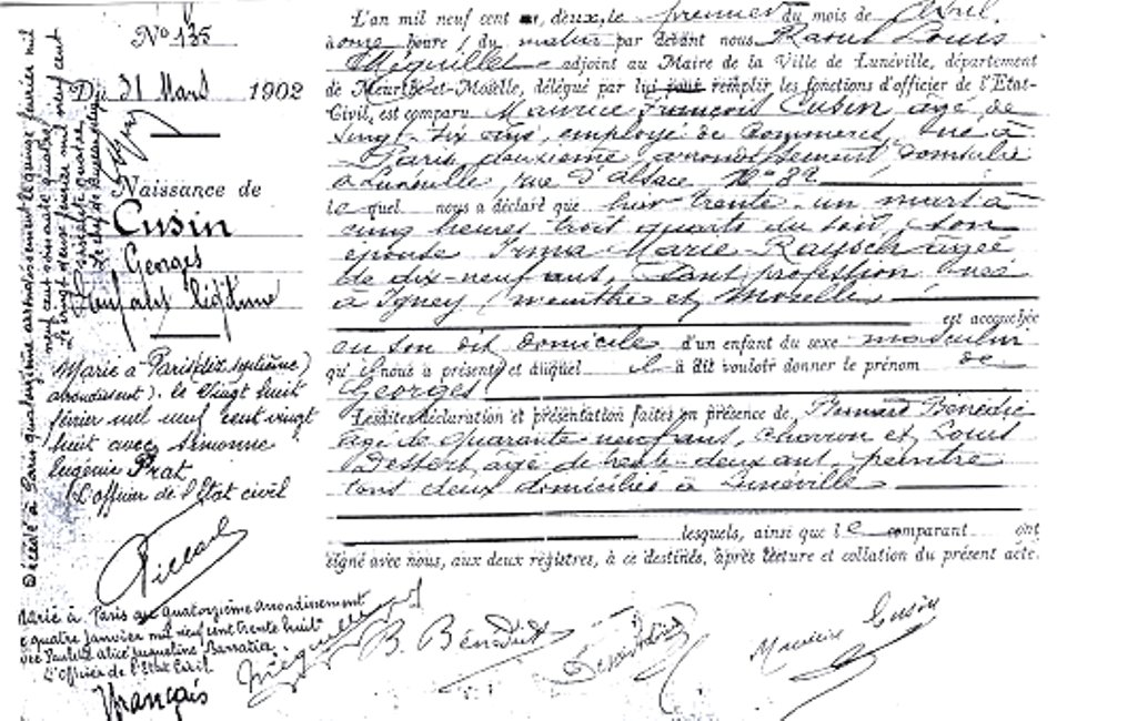 1902 Acte de naissance (Luneville, France)