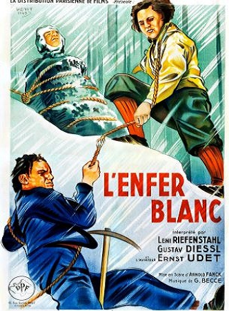 ![]() 1926 La montagne sacrée (der heilige berg) de Arnold Fanck avec Leni Riefenstahl, Ernst Petersen & Luis Trenker | ![]() 1929 Prisonniers de la montagne (die weiße Hölle von Piz Palü) de Arnold Fanck & Georg Wilhelm Pabst | ![]() 1930 Tempête sur le Mont Blanc (stürme über dem Mont Blanc) de Arnold Fanck avec Leni Riefenstahl & Stepp Rist | ![]() 1933 S.O.S. iceberg – de Arnold Fanck & Tay Garnett avec Rod La Rocque, Leni Riefenstahl & Sepp Rist | ||