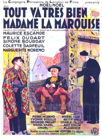 ![]() 1934 Mam’zelle Spahi – de Max de Vaucorbeil avec Noël-Noël, Raymond Cordy, Mady Berry & Saturnin Fabre | ![]() 1936 Tout va très bien madame la marquise – de Henry Wulschleger avec Colette Darfeuil & Simone Bourday | ![]() 1939 Les cinq sous de Lavarède – de Maurice Cammage avec Fernandel, Josette Day, Mady Berry & André Roanne | ![]() 1950 L’amant de paille – de Gilles Grangier avec Jean-Pierre Aumont, Gaby Sylvia & Louis de Funès | ||