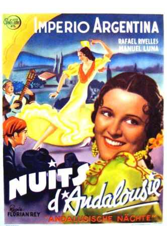 ![]() 1938 Nuits d’Andalousie (Carmen la de Triana) de Florián Rey avec Imperio Argentina & Rafael Rivelles | ![]() 1940 La Dolores – de Florián Rey avec Concha Piquer, Manuel Luna, María Luisa Gerona & Ricardo Merino | ![]() 1943 Orosia – de Florián Rey avec Blanca de Silos, José Nieto, María Brú, José Isbert & José Sepúlveda | ![]() 1950 Cuentos de la Alhambra – de Florián Rey avec Carmen Sevilla, José Isbert, Rosario Royo & Nicolás D. Perchicot | ||
