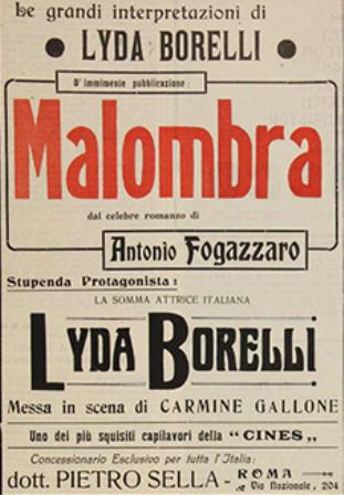 En 1913, vénérée par le public et respecté par la critique, Lyda Borelli fait ses débuts au cinéma. Instantanément appelée La Divine grâce à Mario Caserini qui lui offre le rôle dramatique d’une actrice qui vit un amour impossible avec Mario Bonnard dans «Mais, mon amour ne meurt pas!», dont la fin ne peut être que tragique et déchirante, elle s’empoisonne et meurt dans ses bras en murmurant les mots du titre du film. Le succès est énorme et l’impose immédiatement parmi les divas du cinéma italien. Malgré la douceur de son visage magnifié par de grands yeux clairs, Lyda Borelli fascine le public en jouant des personnages émouvants au destin fatal. Avec «La femme nue» (1914) de Carmine Gallone, elle tente de mettre fin à ses jours pour un peintre qu’elle aime mais qui l’abandonne après avoir atteint la célébrité en peignant son portrait. Elle sombre dans la dégradation avec le mélodrame de Carmine Gallone «Fleurs du mal» (1915), elle y campe une prostituée qui abandonne son enfant, des années plus tard elle retrouve son fils mais la prenant pour une indic de la police, il la poignarde ignorant que c’est sa mère. Nino Oxilia signe une fresque faustienne qui mène à la tragédie avec «Rapsodie satanique» (1915) où Lyda Borelli interprète une vieille comtesse qui, aveuglée par l’illusion de la jeunesse, signe un pacte avec le diable pour retrouver ses vingt ans.