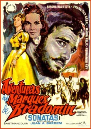 ![]() 1947 Luis Candelas (Luis Candelas, el ladrón de Madrid) de Fernando Alonso Casares avec Alfredo Mayo | ![]() 1955 Mort d’un cycliste (muerte di un ciclista) de Juan Antonio Bardem avec Lucia Bosé & Alberto Closas | ![]() 1959 Sonatas (las aventuras del marqués de Bradomin) de Juan Antonio Bardem avec Francisco Rabal | ![]() 1963 Suspendido en sinvergüenza – de Mariano Ozores avec José Luis Ozores & Elisa Montés | ||