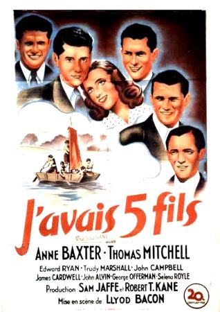 ![]() 1943 J’avais cinq fils (the Sullivans) de Lloyd Bacon avec Thomas Mitchell, Anne Baxter & Ward Bond | ![]() 1943 Maîtres de ballet (the dancing masters) de Malcolm St. Clair avec Oliver Hardy, Stan Laurel & Allan Lane | ![]() 1950 Jungle Jim dans l’antre des gorilles (mark of the gorilla) de William A. Berke avec Johnny Weissmuller | ![]() 1956 Pleine de vie (full of life) de Richard Quine avec Richard Conte, Judy Holliday, Esther Minciotti & Silvio Minciotti | ||
