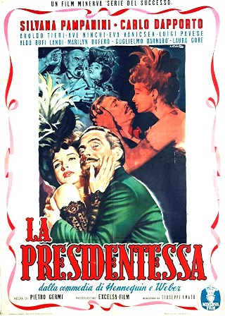 ![]() 1947 Vivre en paix (vivere in pace) de Luigi Zampa avec John Kitzmiller, Aldo Fabrizi & Ernesto Almirante | ![]() 1951 Mademoiselle la présidente (la presidentessa) de Pietro Germi avec Silvana Pampanini & Luigi Pavese | ![]() 1955 Le bigame (il bigamo) de Luciano Emmer avec Marcello Mastroianni, Franca Valeri & Vittorio De Sica | ![]() 1970 La grosse combine (il furto è l’anima del commercio!?) de Bruno Corbucci avec Bernard Blier | ||