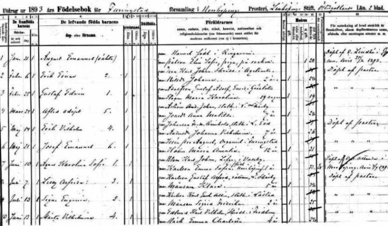 1893 Acte de naissance N°3 (Furingstadt, Suède)