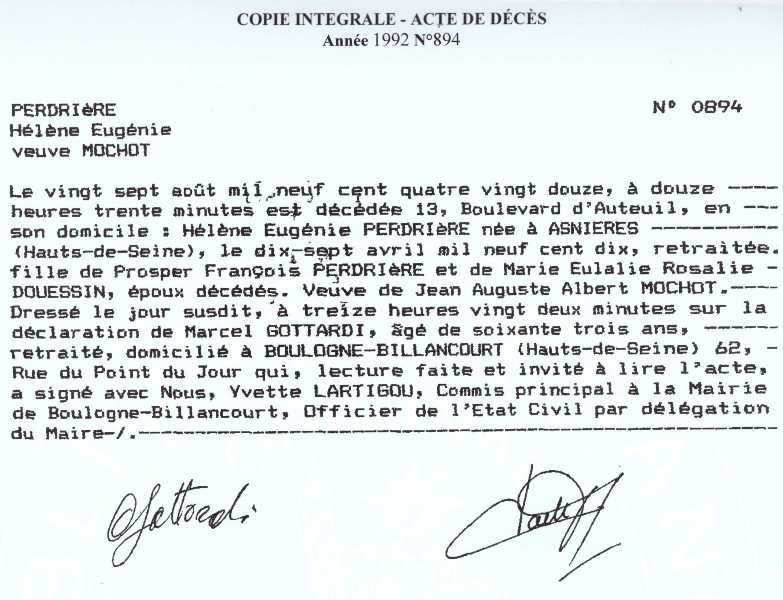 1992 Acte de décès (Boulogne-Billancourt, France)