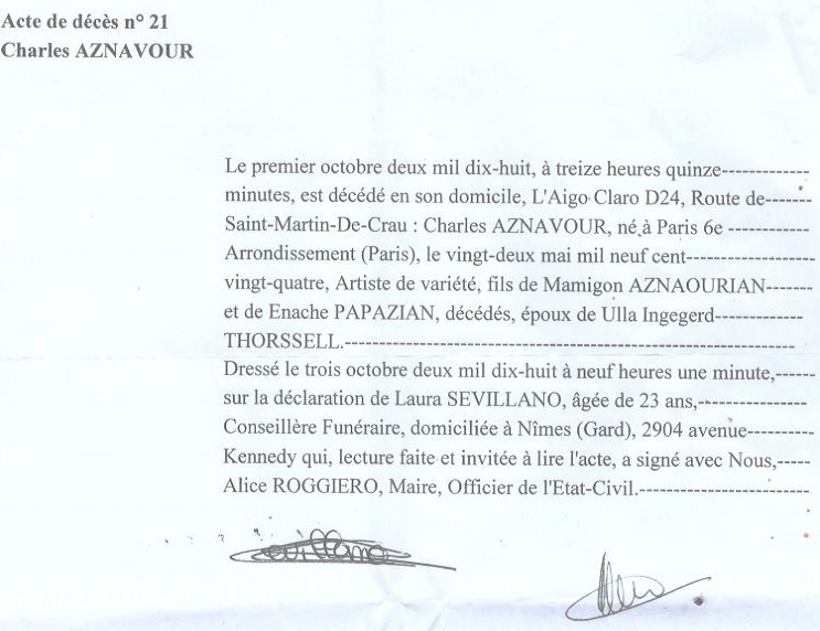 2018 Acte de décès (Mouriès, France)