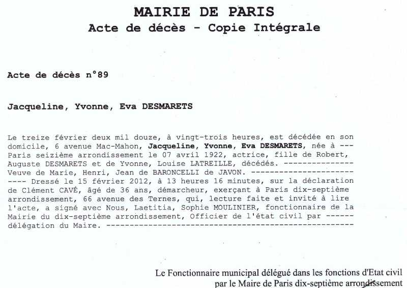 2012 Acte décès (Paris 17ème, France)