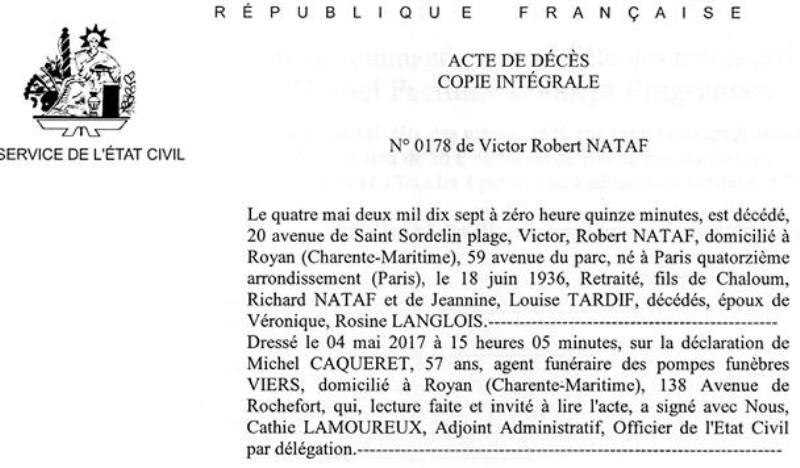 2017 Acte de décès (Vaux-sur-Mer, France)
